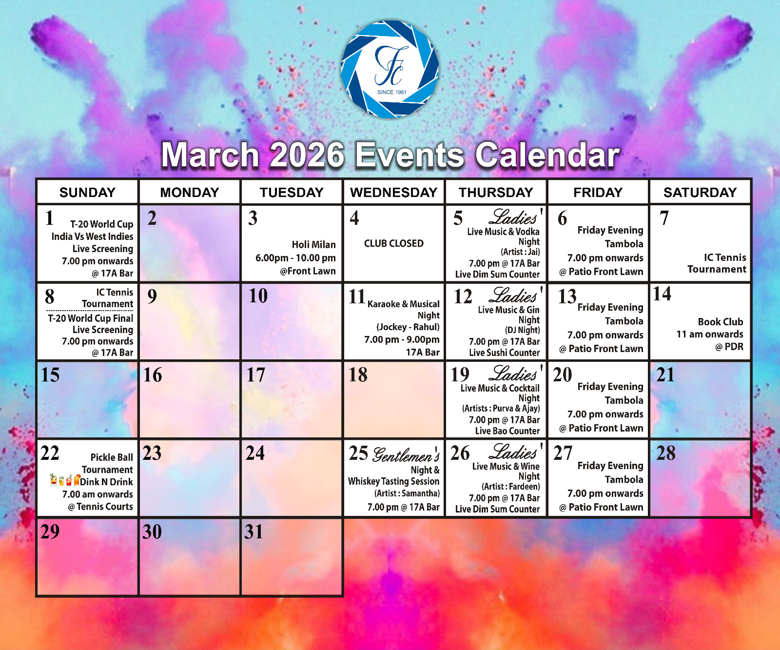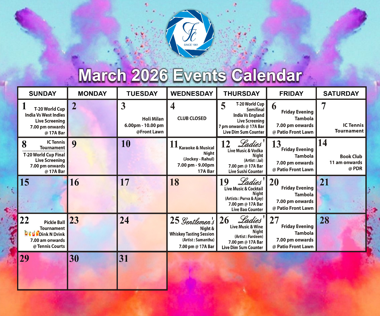 Welcome to Friends Club, a social club in Friends Colony, New Delhi. With a proud heritage of over 60 years, the club has served many generations of members with its warmth, hospitality and amenities. Members enjoy state of the art sports facilities, recreational facilities including dining and a library with over ten thousand books. Friends Club has something for all ages, from the youngest toddlers, to our oldest members. Through events and activities, the club is a great point of celebration and getting together of it's member community. If you are a member scroll through this site to enjoy many online resources and stay updated in the member's area. If you're browsing or interested in applying to be a member, please feel free to browse through the website and write to us.