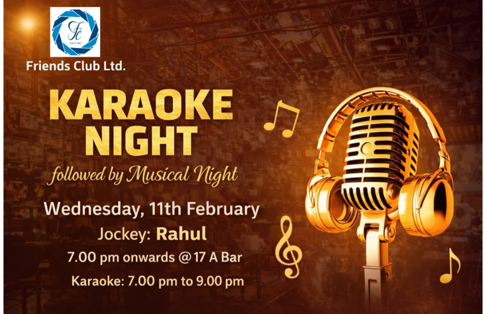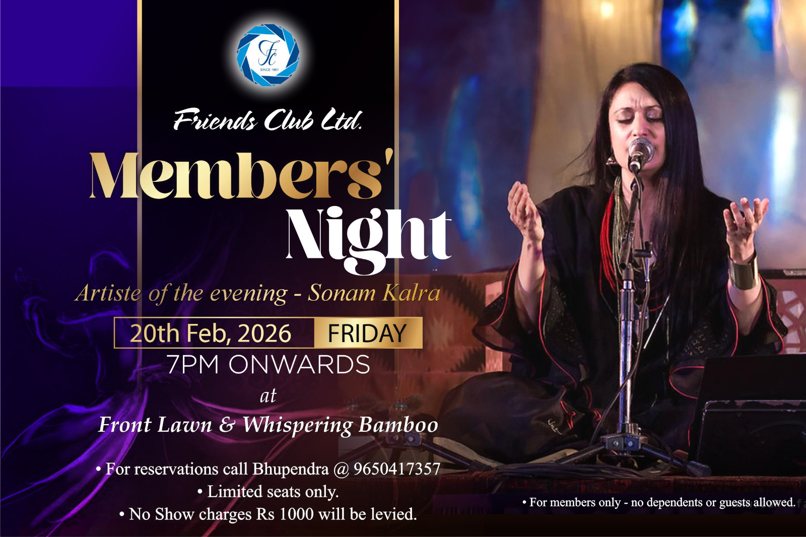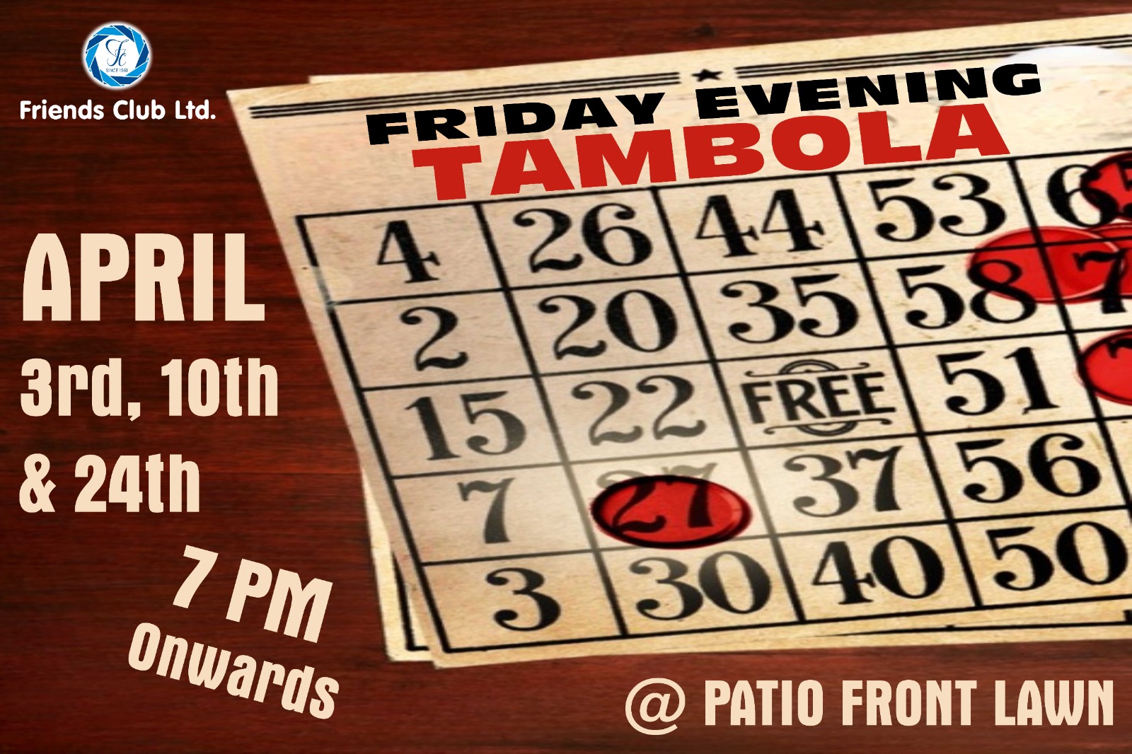 Friends Club Ltd. was established on 24.10.1961 on a plot of land reserved by the Founder Members and promoters of the Friends Colony.