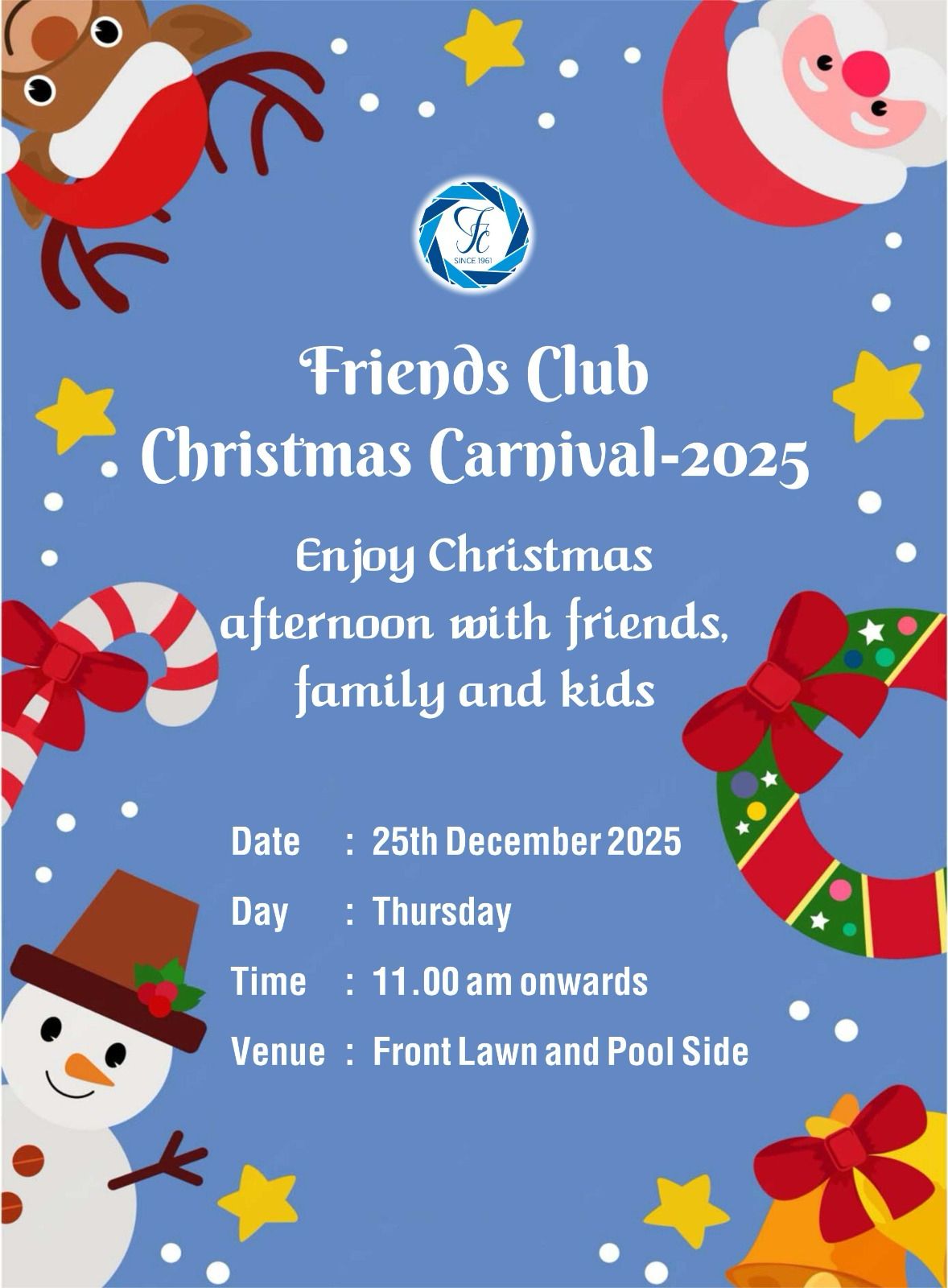 Friends Club Ltd. was established on 24.10.1961 on a plot of land reserved by the Founder Members and promoters of the Friends Colony.
