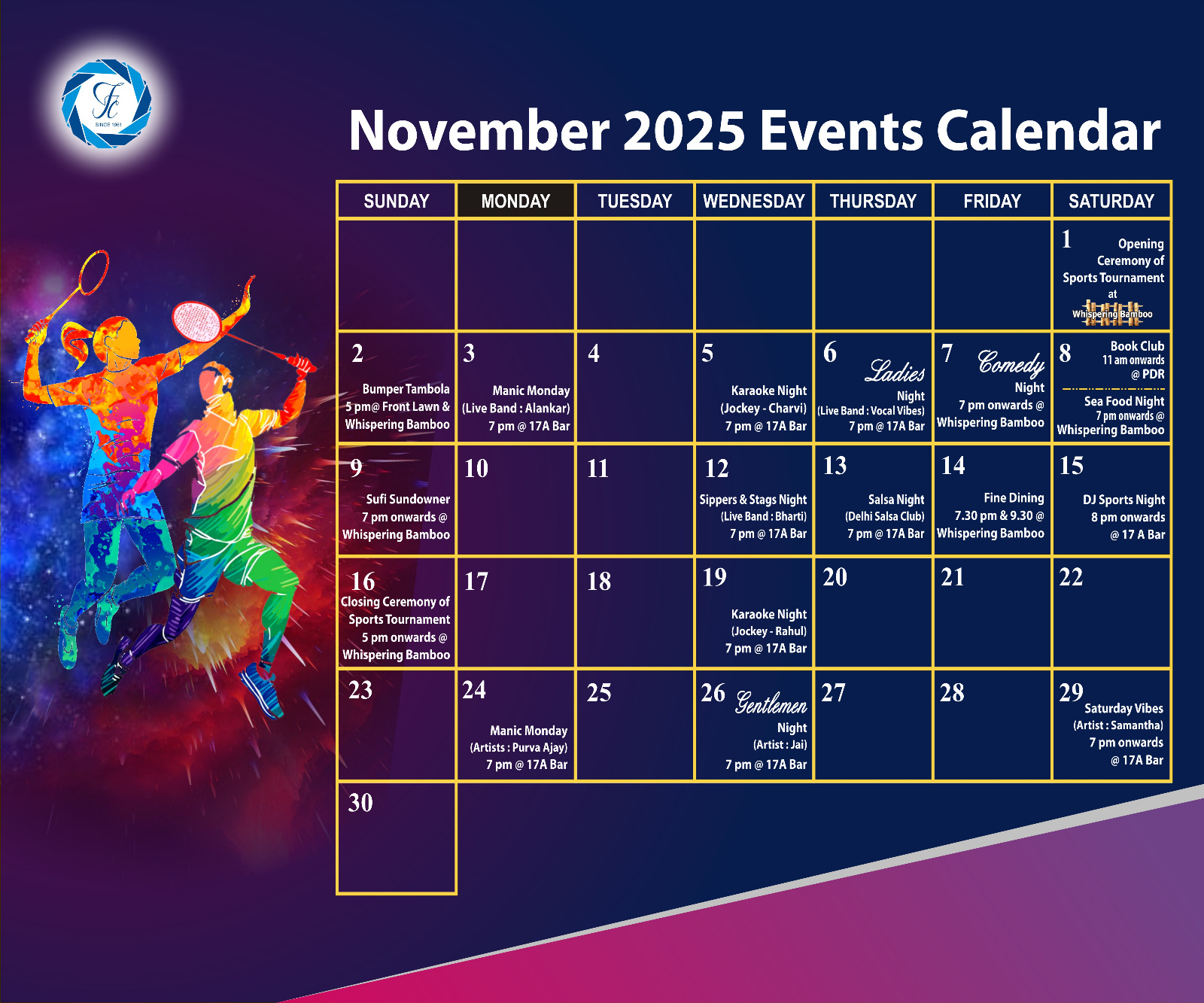 Welcome to Friends Club, a social club in Friends Colony, New Delhi. With a proud heritage of over 60 years, the club has served many generations of members with its warmth, hospitality and amenities. Members enjoy state of the art sports facilities, recreational facilities including dining and a library with over ten thousand books. Friends Club has something for all ages, from the youngest toddlers, to our oldest members. Through events and activities, the club is a great point of celebration and getting together of it's member community. If you are a member scroll through this site to enjoy many online resources and stay updated in the member's area. If you're browsing or interested in applying to be a member, please feel free to browse through the website and write to us.